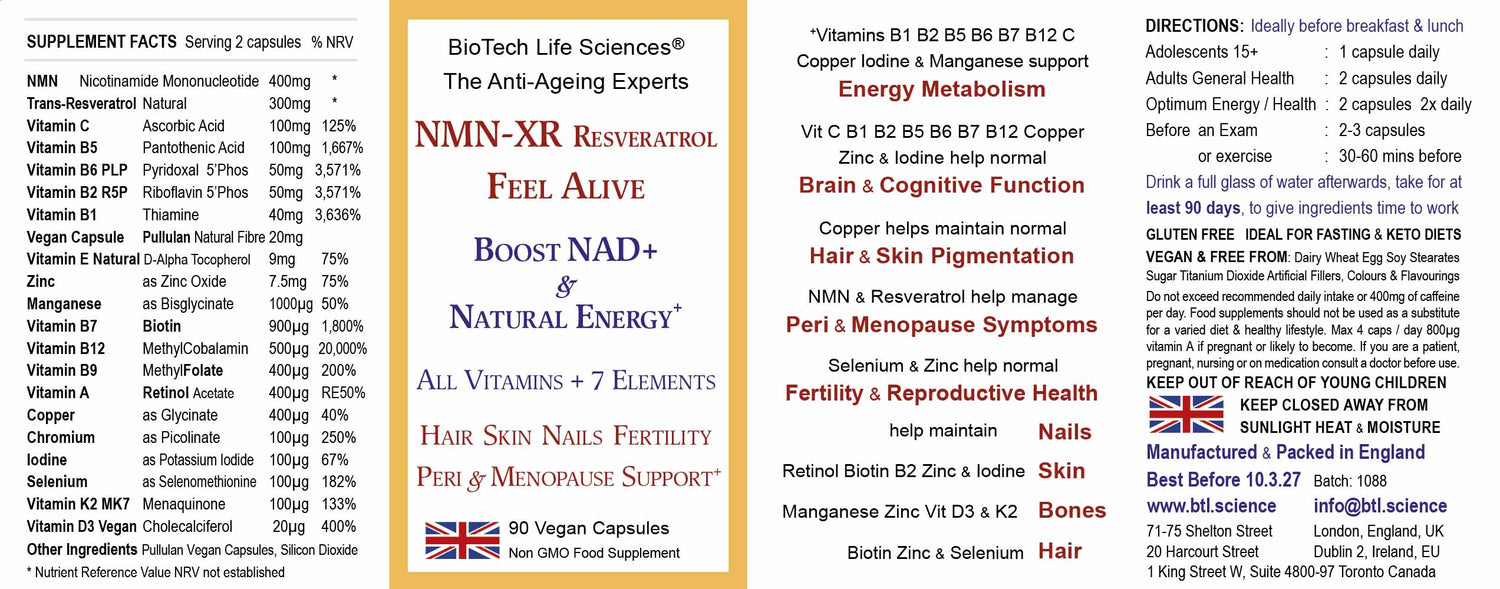 NMN-XR Resveratrol Vitamins Anti-Ageing Hair Skin Menopause 90