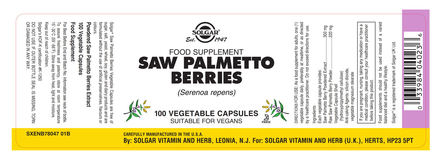 Solgar® Saw Palmetto Berries Vegetable Capsules - Pack of 100