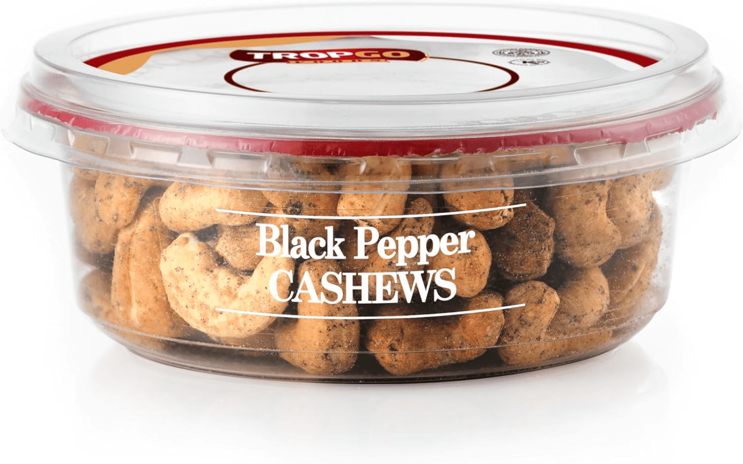Tropgo Black Pepper Cashews 180g Tub - Cashew Nuts in Resealable and Recyclable Tub